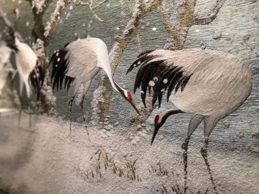 馆内刺绣作品包括苏绣、沈绣、湘绣、乱针绣等,其中苏绣以精细著称,善于用细腻的颜色过渡表现光与影,而将这种发挥到极致的是苏绣的分支沈绣。沈绣艺术家使用的绣线,往往只有一根丝线的1/8甚至是1/16,这样绣出来的作品,细腻而逼真,经得住近距离观赏。