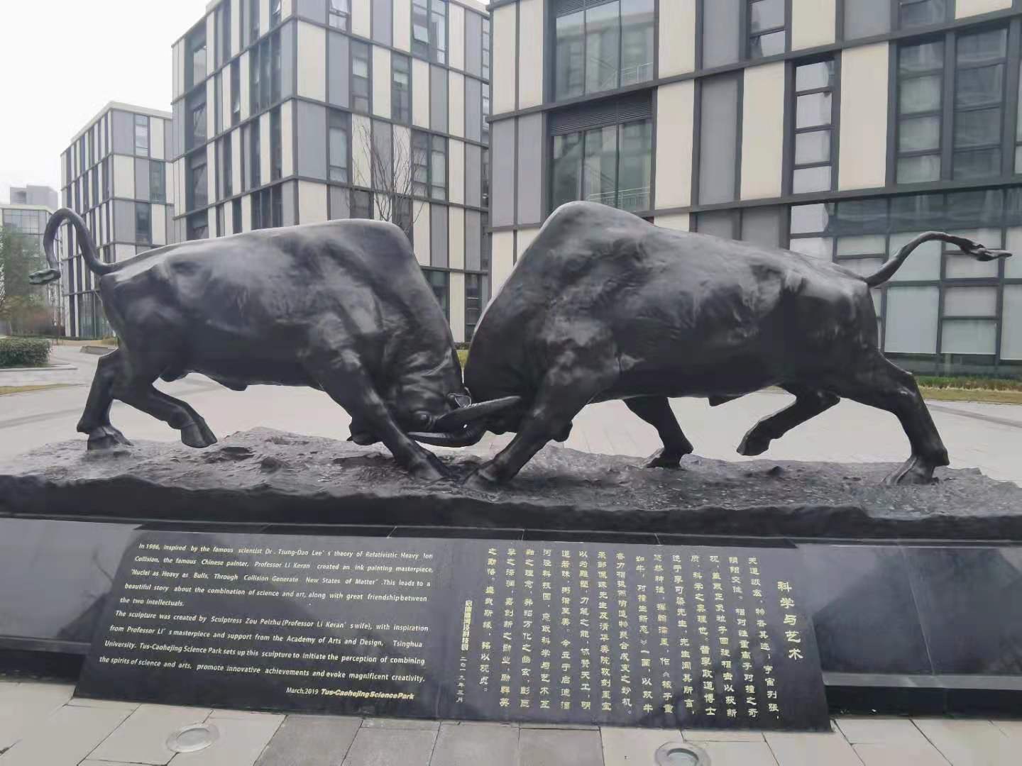 据了解,这座“核子对撞牛”雕塑寓意为“核子重如牛,对撞生新态”。其诞生源自科学大师李政道先生与艺术大师李可染先生的思想碰撞。1986年,李政道先生讲述了人类可以通过重离子对撞探索宇宙的奥秘,李可染先生深为所动,创作了国画《核子重如牛,对撞生新态》。在李可染夫人邹佩珠先生亲自指导策划的雕塑模型基础上,清华大学美术学院将雕塑具体落成。