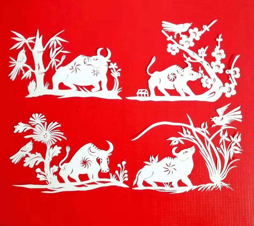 迎来牛年春节,延续创作新年生肖剪纸的传统,郑树林向全国各地徒弟、学生进行牛年创作提示,得到积极响应。半个月就收到了来自全国各地牛年剪纸一百多幅,一幅幅剪纸花样表达了大家对传统剪纸的喜爱和对美好生活的热爱。