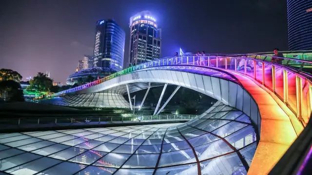 11.“一滴水”国际邮轮码头→虹口滨江绿地→彩虹桥→老上海露天码头文化博物馆→航运广场→邮食荟→嗨派运动公园体验