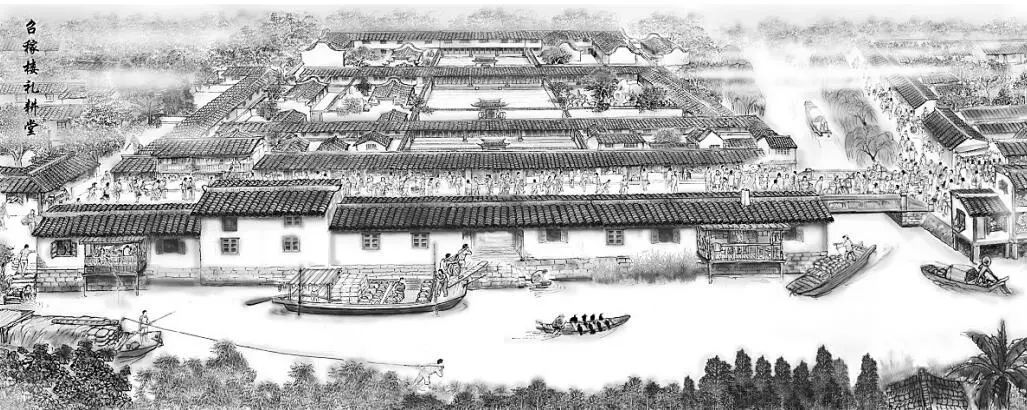 无论是王侯相府还是民间宅第,除了大门之外,一般都在宅后园旁开一小门,便于人员进出。而奚氏却在礼耕堂的东部开设一扇边门,并且利用自然地形在南北向的市河复兴港上架设吊桥,连通边门和街市。吊桥昼放夜收给礼耕堂增添了几分安谧和神秘。这种巧妙的设置实在难得一见。