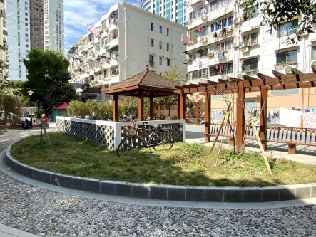 集晾晒、休闲、健身、散步、文化、生态功能为一体。考虑到小区老年居民居多,小花园增设有靠背和扶手的座椅,增设老年人喜爱的鹅卵石步道,用坡道代替台阶......