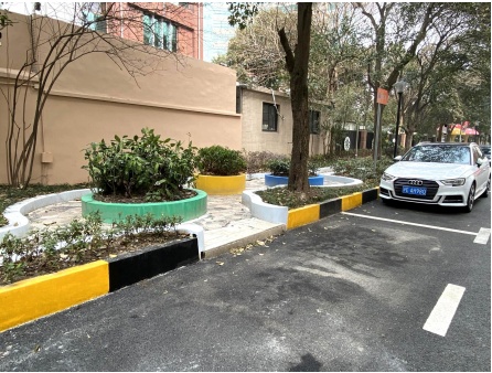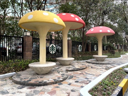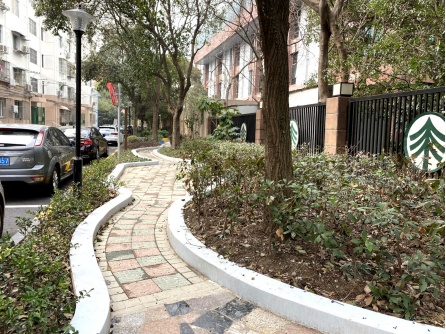 蘑菇亭、花坛以及蜿蜒的路径,夏日可乘凉消暑,冬日可闲庭信步。补种绿化,设置路灯,放置座椅,让时光变慢,让人行道更富趣味。