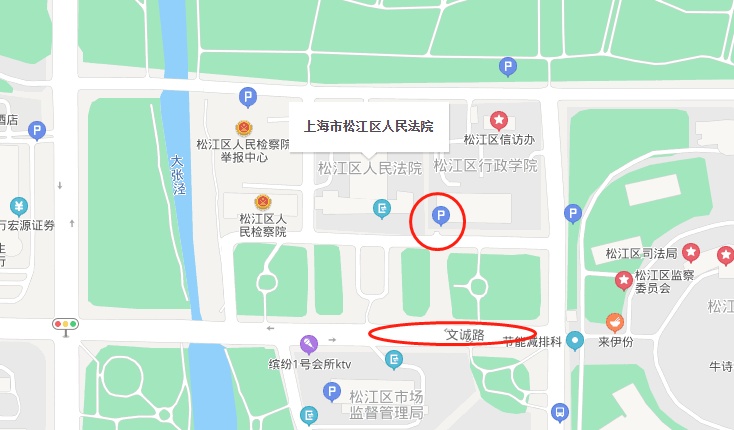 位于上海松江法院北门的南青路上,在法院门口就可以停车。