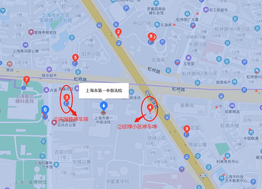 这个停车场位于上海高院东南门的附近,停好车步行到法院只要1分钟。