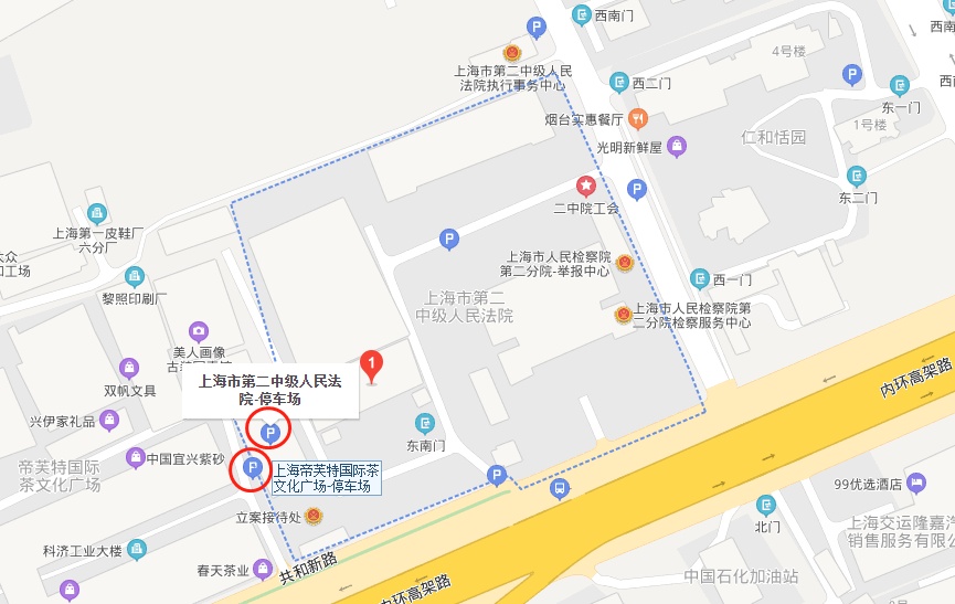 上海二中院附近的共和新路上,茶文化广场可以停车。
