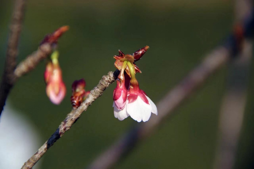 上海植物园早樱开啦!但为何部分樱花只有半边花萼?
