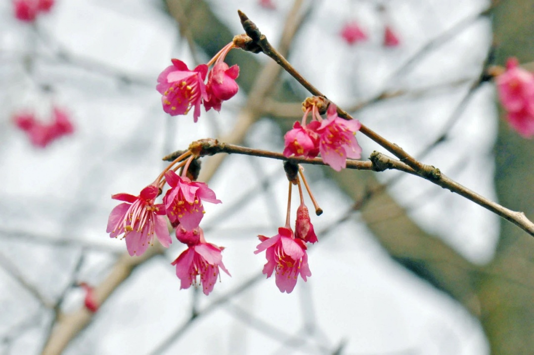 今年,由于一月上旬持续冰冻天气的袭击,使得今年早樱花开放受到了明显不利影响,如寒樱和福建山樱花的部分早萌发的花芽受冻枯萎。但冰冻期过后,随着气温的回升,未受冻的花芽继续萌发,目前已进入花期。