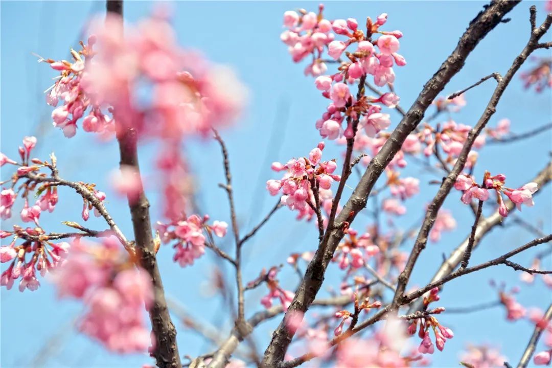 去年,#上海的樱花开了#话题一度冲上微博热搜,随着春天离我们越来越近,这片粉色的花海又回来啦!上海植物园的多个早樱品种已进入花期,最近天气不错,来赏樱吧~