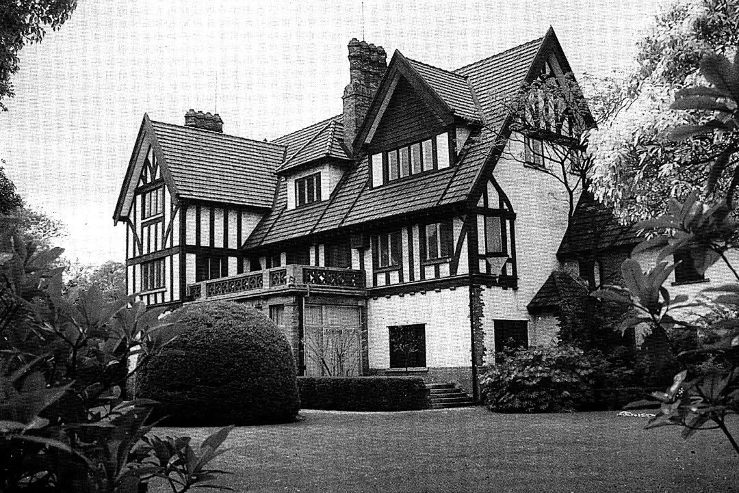 正广和洋行大班住宅是典型的英国乡村别墅式住宅,由思九生洋行设计,建于1928年。山墙和外墙上都有半露木构架,从早期拍摄的照片可知,其屋面很陡。就功能上说,是为了不使屋顶积雪而压塌房子。但在上海,这个功能完全没有作用,因为即使在平地上积雪,上海也是数年才能一见。或许只能解释,采用这样的风格更多是寄托了房主对家乡的思念。