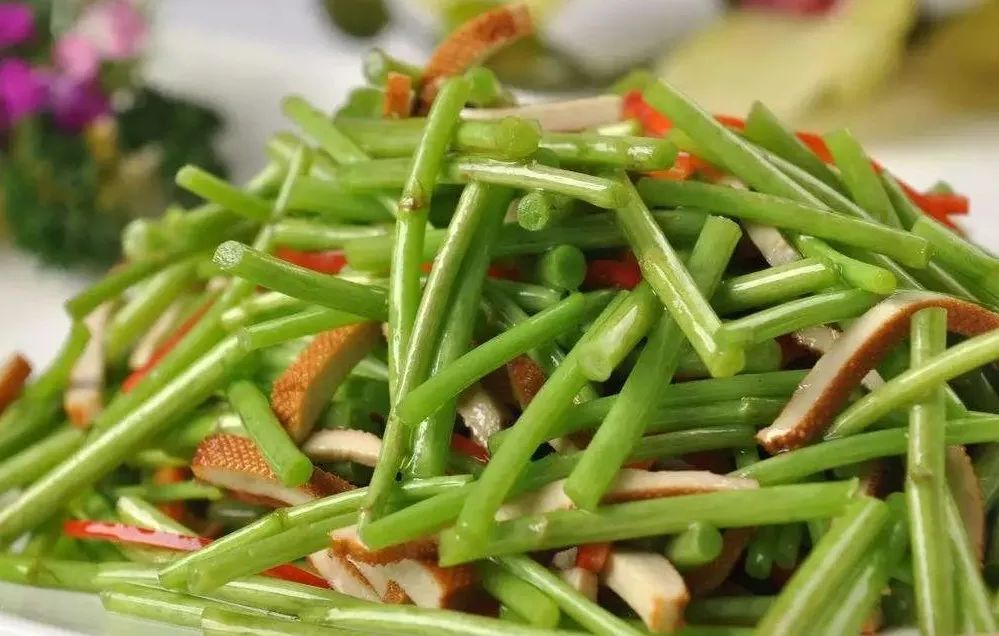 芦蒿的特殊香气可以促进人的食欲,芦蒿炒香干也是春天必吃的一道美食,只用盐和食用油,几乎不加别的佐料,更好地保留了芦蒿和香干相混的清香。