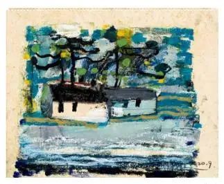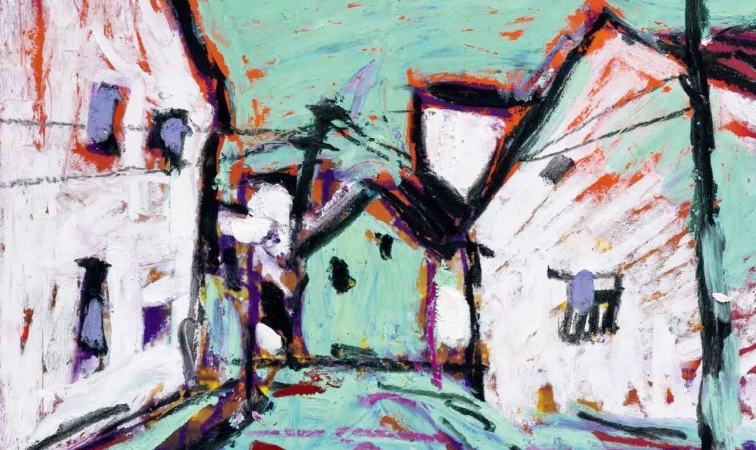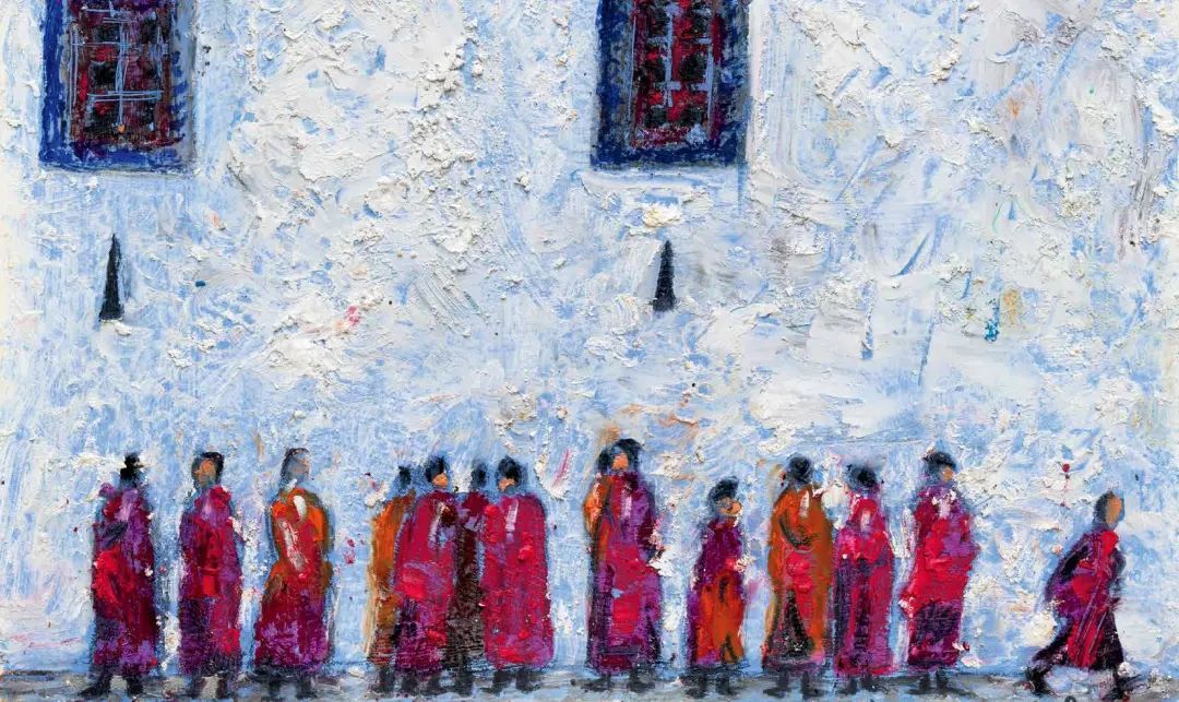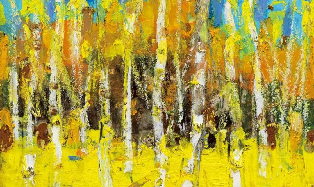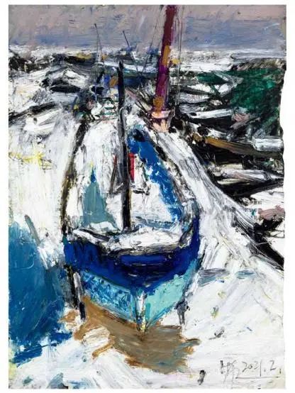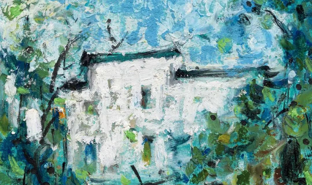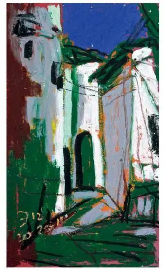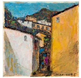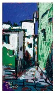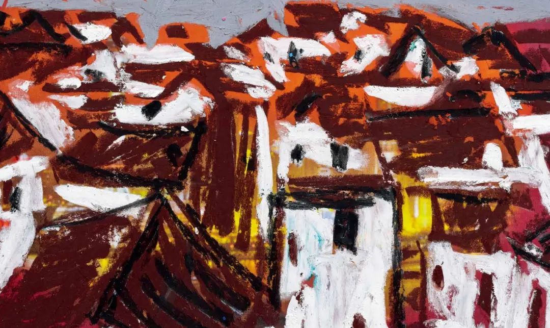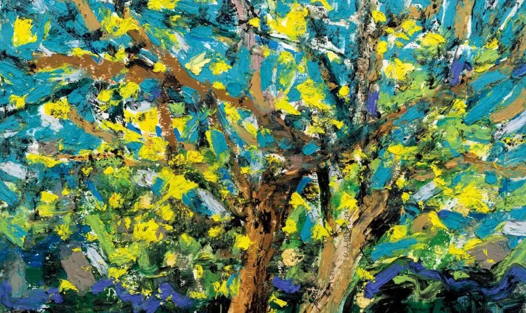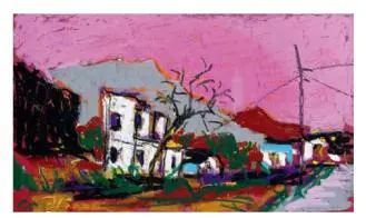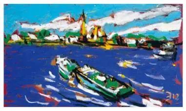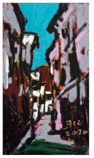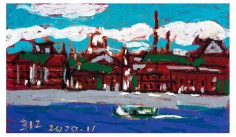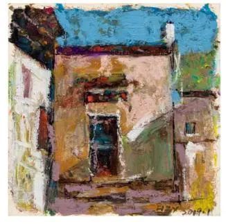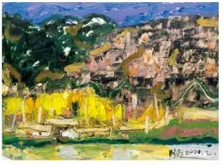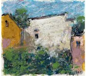 欧洲很早以前就开始用油画棒(固体油画)材料作画了,而且还留下了许多不朽之作。西方发明的油画棒有携带方便、使用轻巧、便于运输等优点,深受画家的喜爱;后来油画棒传到了中国,有不少人使用这种材料作画,最近几年油画棒创作在上海也蓬勃发展了起来,上两个礼拜前,在徐家汇美罗城就有一个 23 人的纸本油画向公众展示。此次参展的三位艺术家都致力于纸上油画创作,他们进入纸本油画的创作也有先后,让激情满满洒在纸上,凌空写出了一朵朵彩云。沈雪江作品一反他原来的水墨"画说人生"组画的淡雅、清远,而将固体油画颜料原色涂抹,厚重地写出了心中的美好,那种铿锵有力的色彩,那种反差强烈的节奏,一定会引起人们对纸上油画的关注;黄展新的画风多样、多变,图式也有跳跃。他有好多年的纸本油画创作经验,恪守的是印象派画家的风格和表达方式,或许,这种风格的坚守,是作为教师进修学院教研员的职责、职守;当年在上戏求学时,黄阿忠便追随孔柏基、陈钧德两位先生玩起了纸本油画。今天,他重新点燃油画棒的创作的热情,在这个意义上,他可以算作是承上启下的实践者,黄阿忠这次展出的作品,也可以视为油画棒创作火焰的添油加柴。我们看到,用油画棒画的纸上油画燃起的熊熊大火,照亮了凌空飘过的那一朵朵云彩。