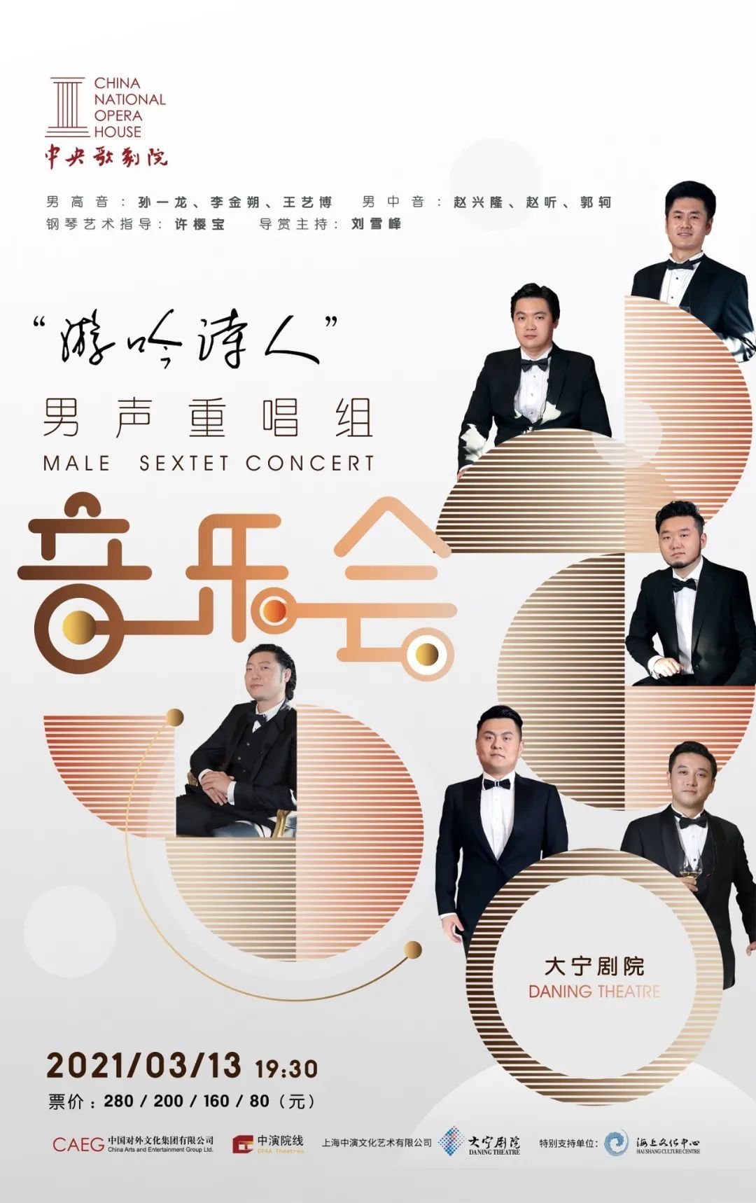 中央歌剧院“游吟诗人”男声重唱组由六位优秀青年歌唱家:孙一龙、李金朔、王艺博、赵兴隆、赵听和郭轲组成,极具特色的男声六重唱演出足迹曾遍布联合国欧盟、西班牙、北马其顿、白俄罗斯、乌克兰等地,所到之地广受好评。