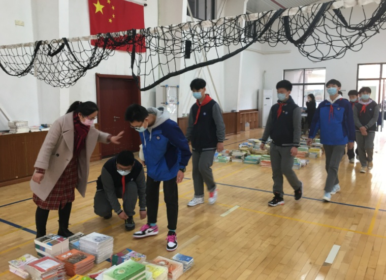8点整,全体师生在操场举行简短的升旗仪式。根据防疫要求,学校取消了开学前一天报道交作业发书本的传统流程,各班男生在升旗仪式后排队进入活动室领教材。虽然很多同学才刚刚拿到新课本,但大家已经根据老师们寒假前发的复印材料进行了预习,心态稳稳哒。