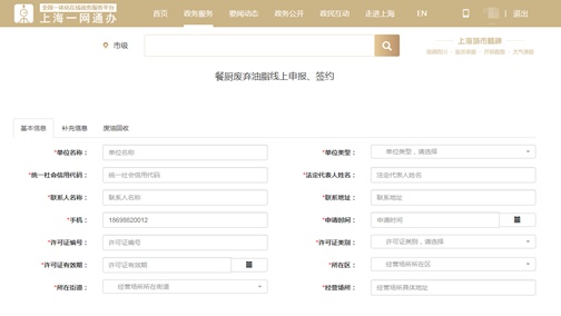 一网通办平台上的餐厨废弃油脂线上申报、签约系统