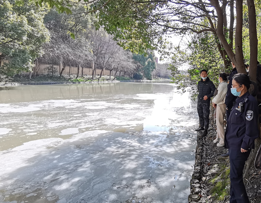 2021年2月19日9时45分,春节假期刚刚结束第二天支队接到有居民反映成山路杨高南路附近河面上存在大量白色物质污染河道。接报后,浦东支队第一时间赶赴现场,开展溯源排查。
