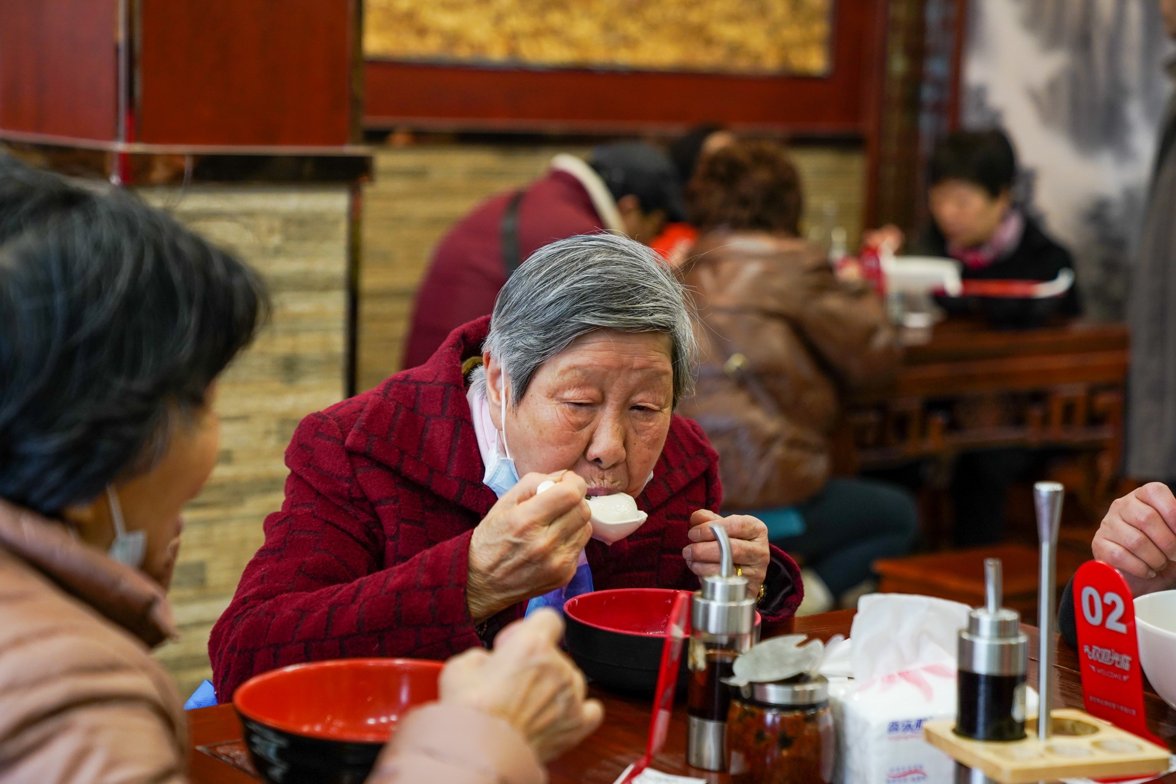 家住水电路的高阿姨和家里人一起过来,他们分别点了一份芝麻汤团,一份鲜肉汤团,阿姨说,“我们从六十年代起就开始吃这家的汤圆,不只是元宵节,平时有机会就过来吃上一碗解解馋。这里的汤团皮薄、香糯却不黏牙,很适合老年人。”