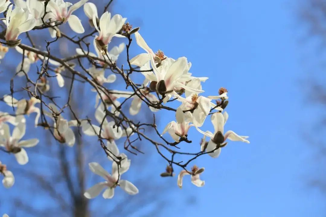 新年伊始,万物刚刚开始复苏,而我们上海市市花白玉兰的姐妹望春玉兰却已经来到了盛花期,白色的花朵缀满枝头,在蓝格莹莹的天空映衬下,更加冰清玉洁,楚楚动人。