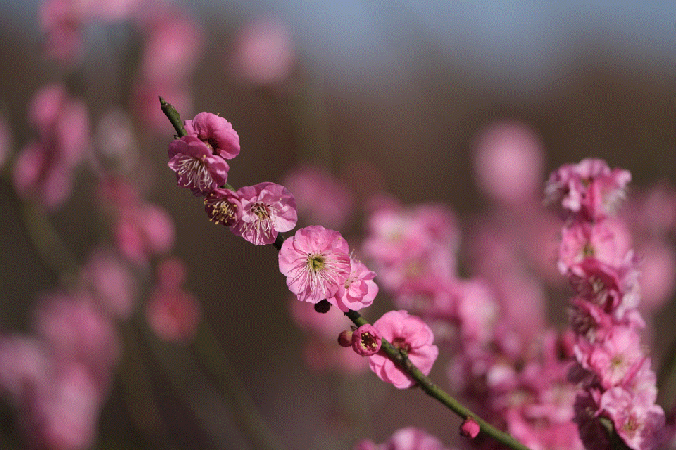 世纪公园梅园占地10万平方米,栽有梅花30个品种,3000余株,世纪梅园以梅花文化为灵活脉络,可以在梅海中徜徉,赏梅花、闻梅花、品梅韵。浓红、淡粉交相辉映,迎着艳阳,踏着春光,看到这些可人的梅花,心情就会放晴。