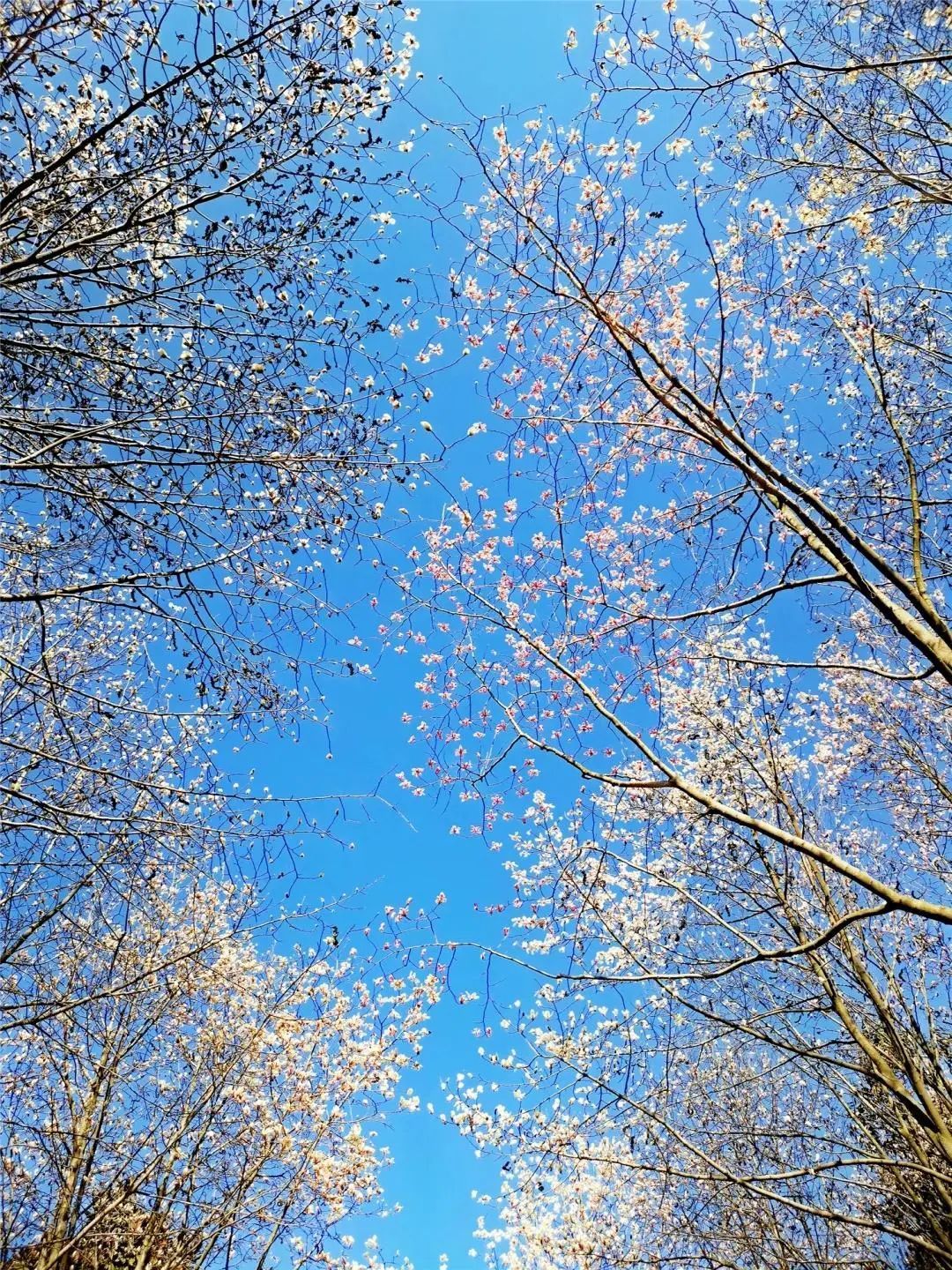 这几日天气回暖,上海共青森林公园内的各种花儿终于按捺不住对春天的向往,纷纷吐露芬芳,一展身姿。而早春最为壮观的,当属公园内数百株亭亭玉立的玉兰,尤其是象征着创新开拓、奋发向上精神的洁白如玉的上海市市花白玉兰正纷纷初放枝头。