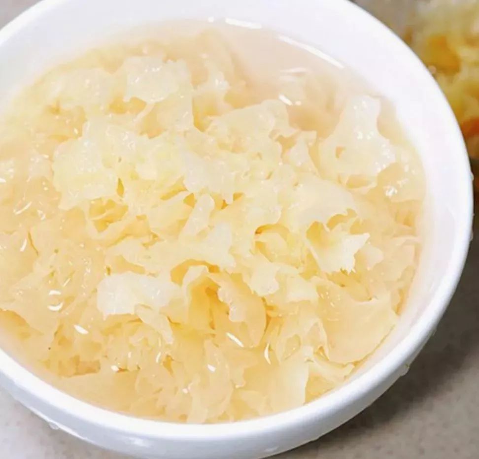 建 议 :购买银耳时,要选择微黄色,根蒂部位没有杂质,泡发后的耳花大而松散,韧性强,肉质饱满有嚼劲的。