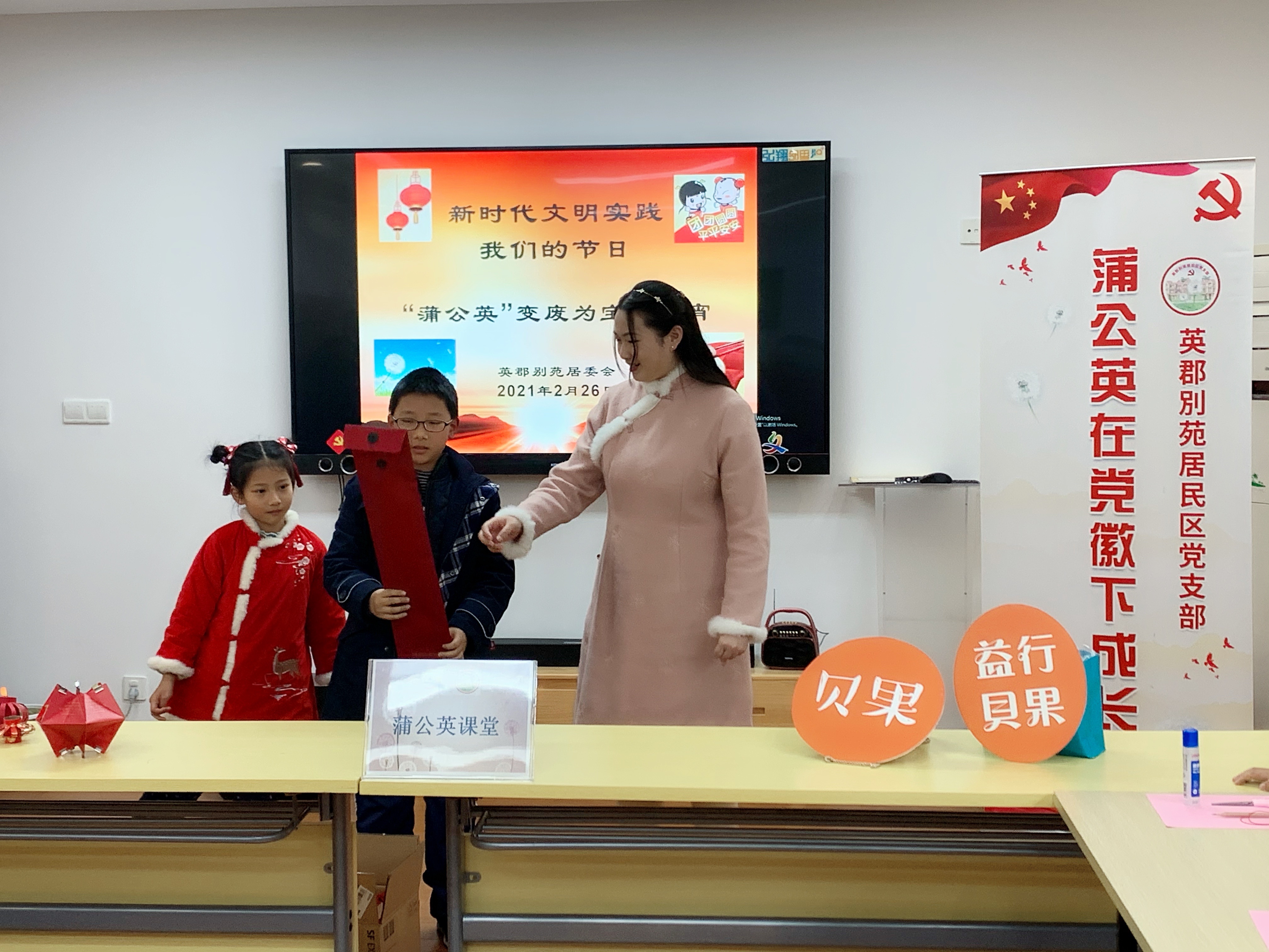 “刚过完年,家家户户都存着不少拆下的礼盒包装、零食罐子、饮料瓶等物品,我们居委会准备了一些,也号召居民从家中带一些到活动现场。”英郡别苑居民区党支部书记陈德明介绍说,赏花灯是元宵节的重要习俗之一,通过开展变废为宝制作环保花灯的活动,孩子们不但提升了动手能力,而且在潜移默化中也养成了环保的意识。活动之余,居委会工作人员和志愿者还向居民们讲述了元宵节的来历和相关知识。