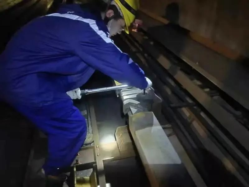 地铁运营方出动检修人员350余人次,他们身披“蓝色战甲”,手握各式样的检修“神器”,如接触轨监控巡视装置,可对作业全程记录,便于后期追踪。此外,检修人员对每一个螺栓进行紧固、对接触面进行逐一排查,消除硬点、要求每一个定位点导高和拉出值都须精确达标。