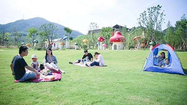 童心童趣园拥有阳光草坪、动物雕塑、蘑菇乐园、林间小屋、百年柿子树等童趣场景,也有戏水、植物迷宫、原乡滑草、秋千等活动项目,童趣园在绿水青山之间为家长与孩子提供了共同参与游玩的亲子活动区,让全家人共享欢乐时光。