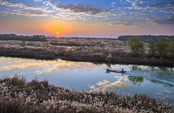 北湖草荡近2万亩的湿地内,多是水洼草地、池塘、芦苇塘等自然景观。芦花盛开后,草荡内如白雪连结成片,远近交错,层层叠叠。北湖草荡更是鸟儿徙线路上的重要驿站,芦花乘着风,捎来候鸟的问候。