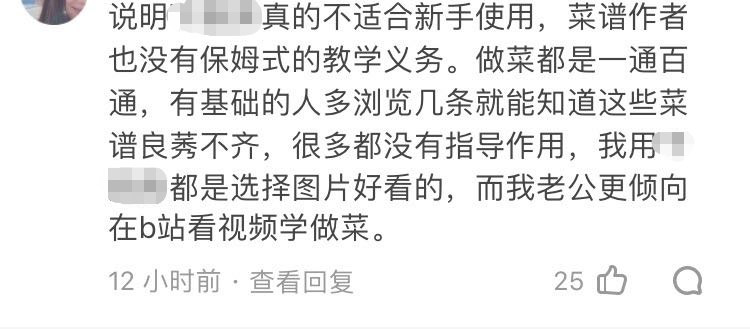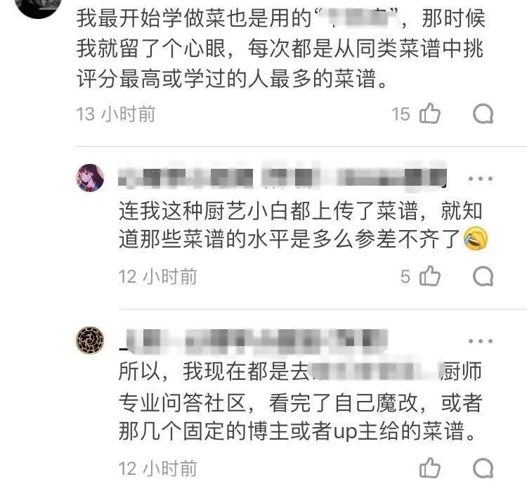 同时,网友也提醒,在第三方平台学习做菜的时,可尽量选择反馈比较多的菜谱,并对比不同分享者和平台的菜谱,以尽量降低风险。