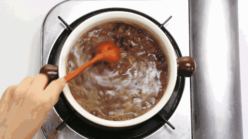 第五步:继续慢火熬煮40分钟,还要不断搅拌。