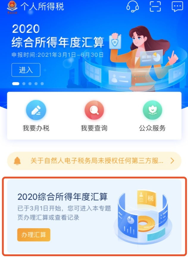 第二步:打开App点击“2020综合所得年度汇算”模块