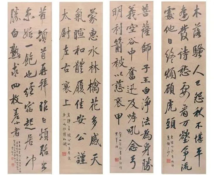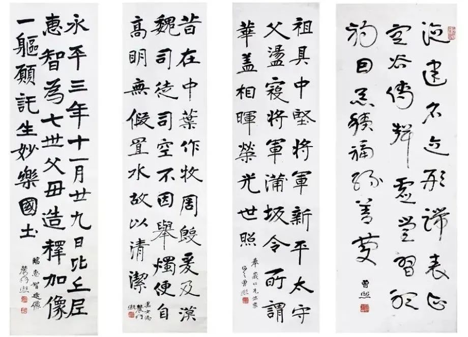 展厅中,曾熙1921年为弟子蒋国榜母亲六十寿辰而作的《蒋母马太夫人六十寿序》六条屏,以《张黑女墓志》笔意写就,温润清雅,笔墨皆精,堪称曾熙楷书代表作品之一。