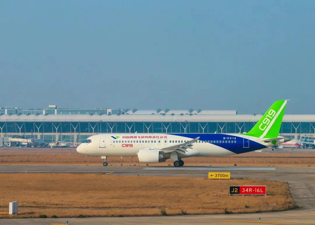 东航深度参与了C919大型客机的设计研发过程,培养提供C919首个机组、为C919首飞伴飞。