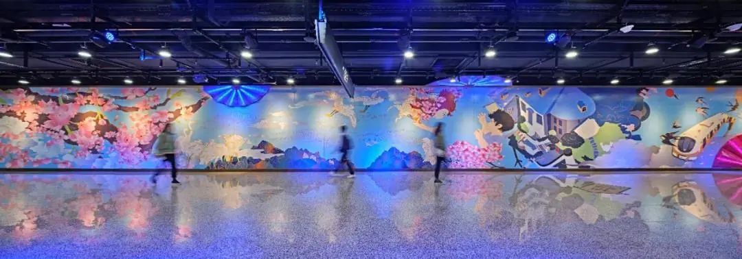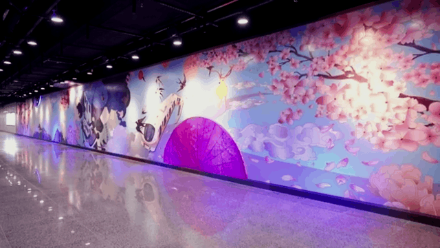 一幅超长的春暖花开燕归来的壁画墙徐徐展开,妥妥的是开往春天的列车!现在正值樱花季,打卡走起!