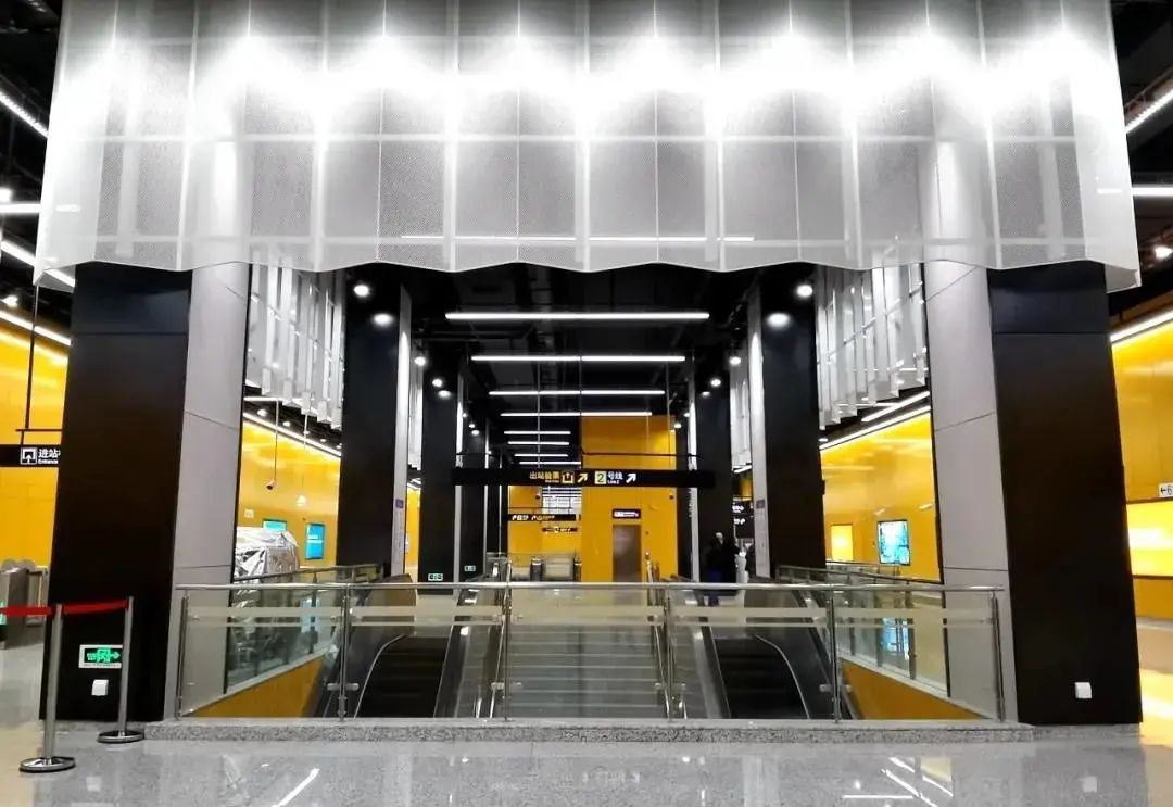 15号线的娄山关路站虽然没有各种炫酷的“特效”装饰,但整体风格让人眼前一亮!