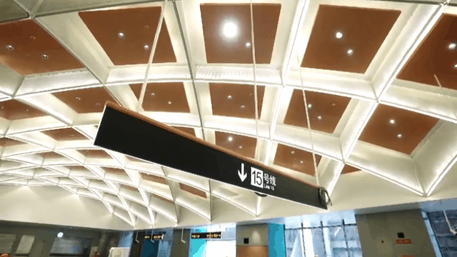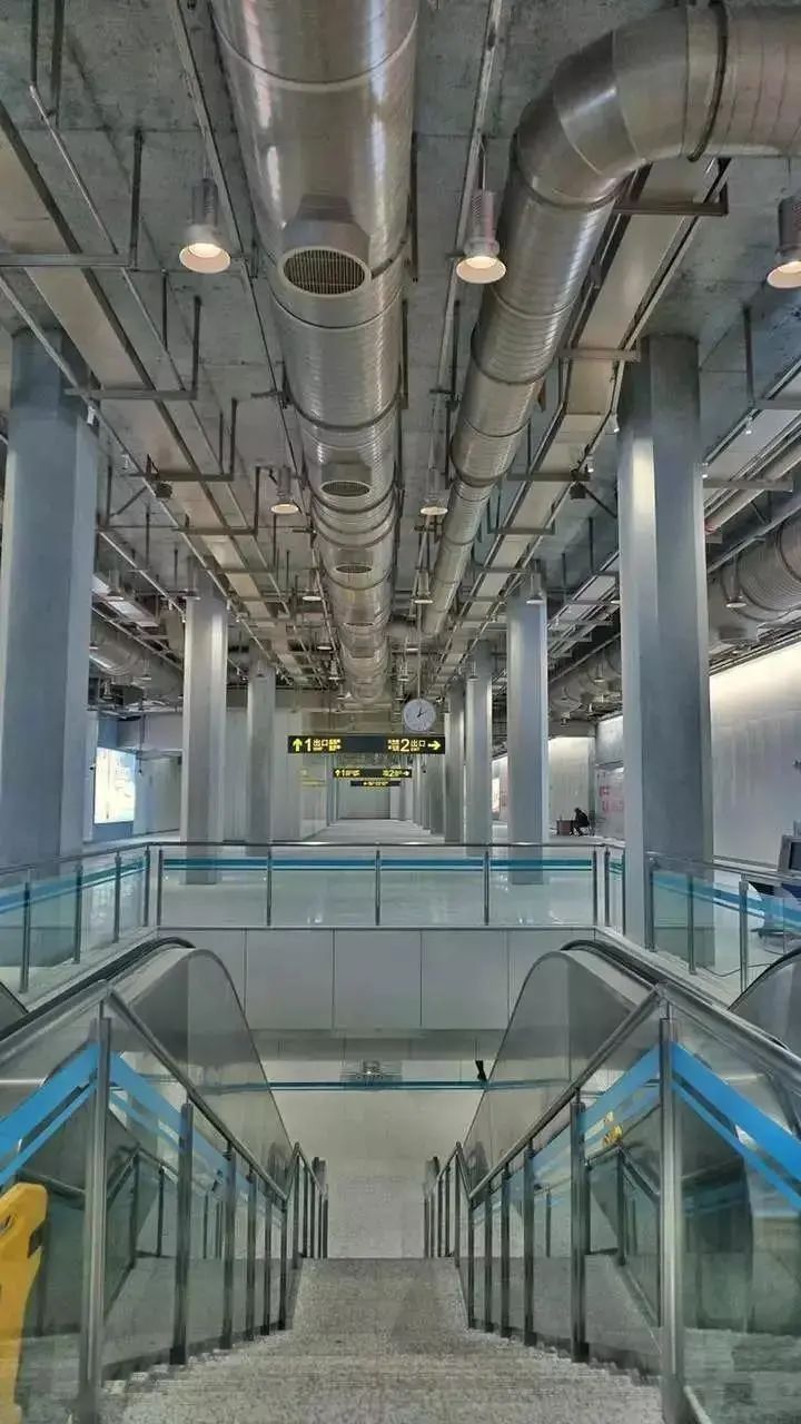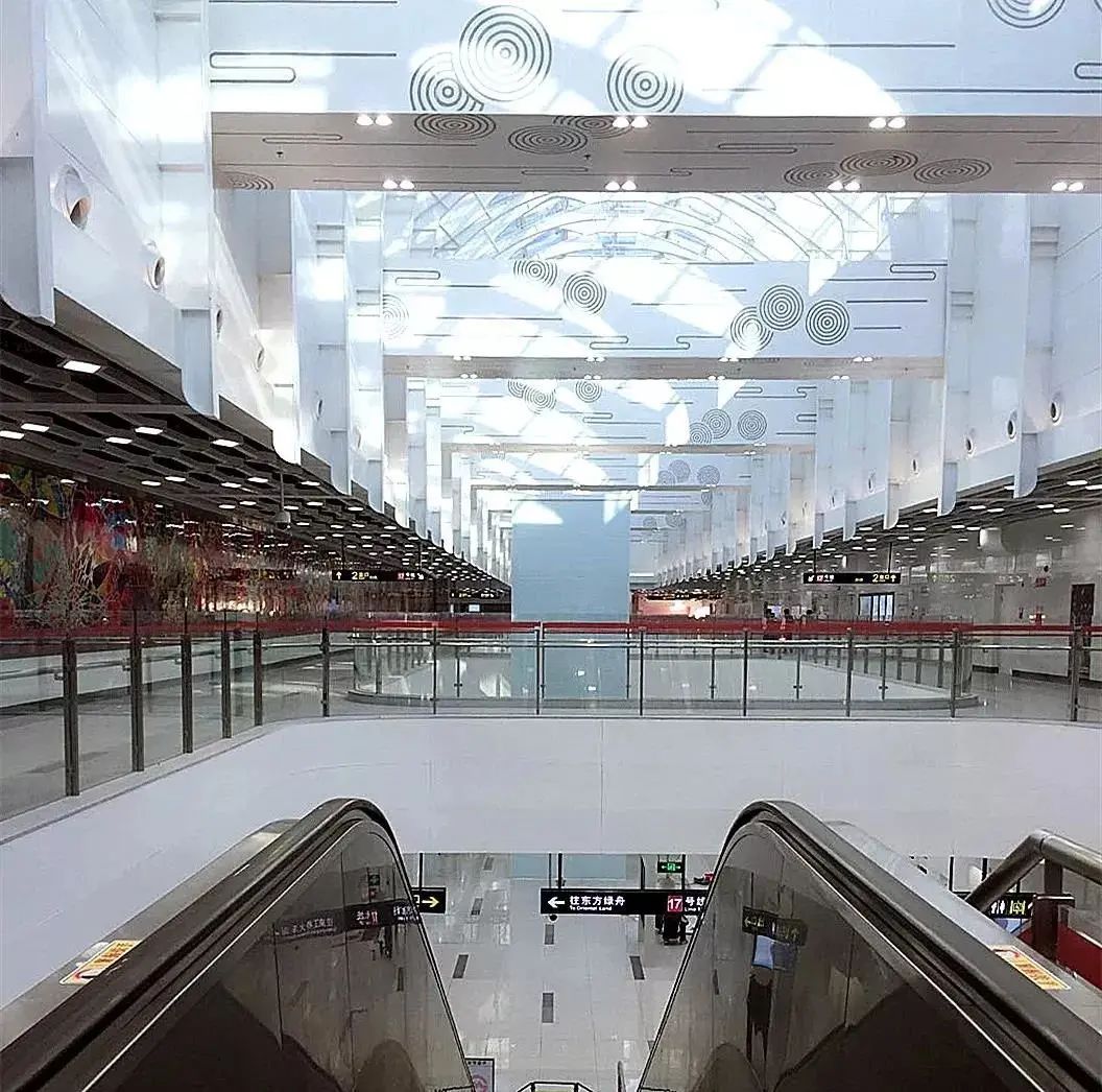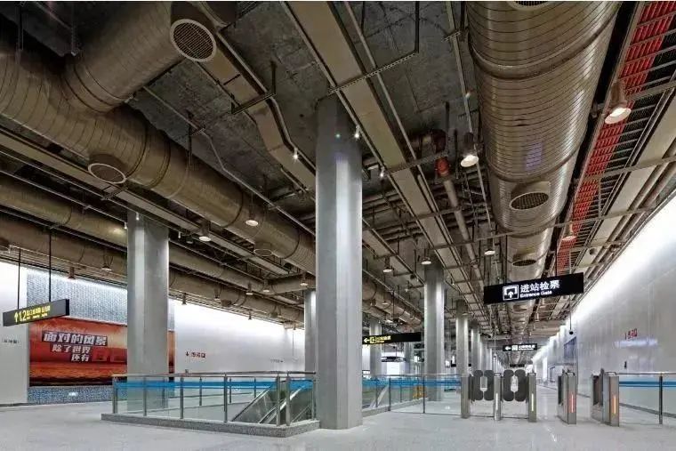 站内总层高6米多,顶部抛弃了以往的装饰,首次采用裸顶圆型风管。