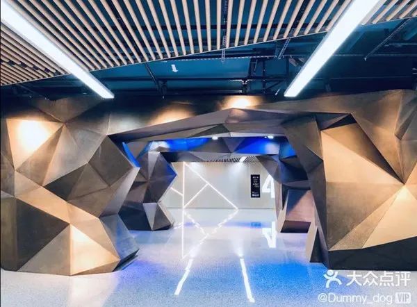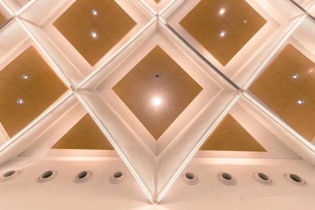通道的条形装饰宛如时空隧道,随着灯光带的变换,引人入胜。