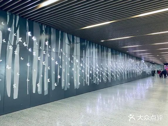 1号线与12号线汉中路转线的通道也是很网红了,换乘大厅就是一个大型灯光装置作品。