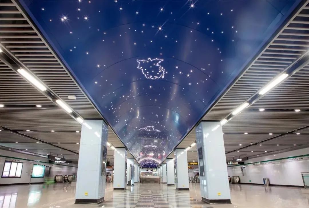 前有汉中路的光影蝴蝶,国际客运中心站直接给阿拉还原了一片浩渺星空!