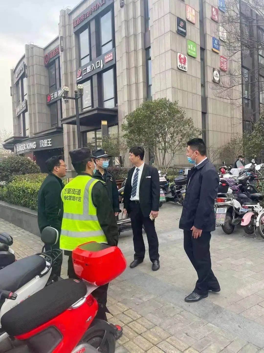 对此,城管万里中队主动协调积极整治。一是与共享单车运营企业联系增强清运能力与频次;二是协调物业管理方加强外卖车辆停放规范管理。同时城管中队主动增强该区域及周边路段巡查力度,补足双方管理空白,及时发现并协调解决共享单车堆积情况。
