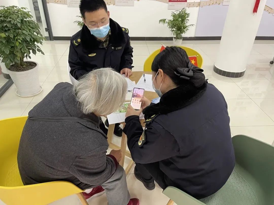 我们详细耐心地向居民们科普垃圾分类小知识、手把手地教他们如何网上办理所需业务、解答他们的疑惑以及记录他们的建议。