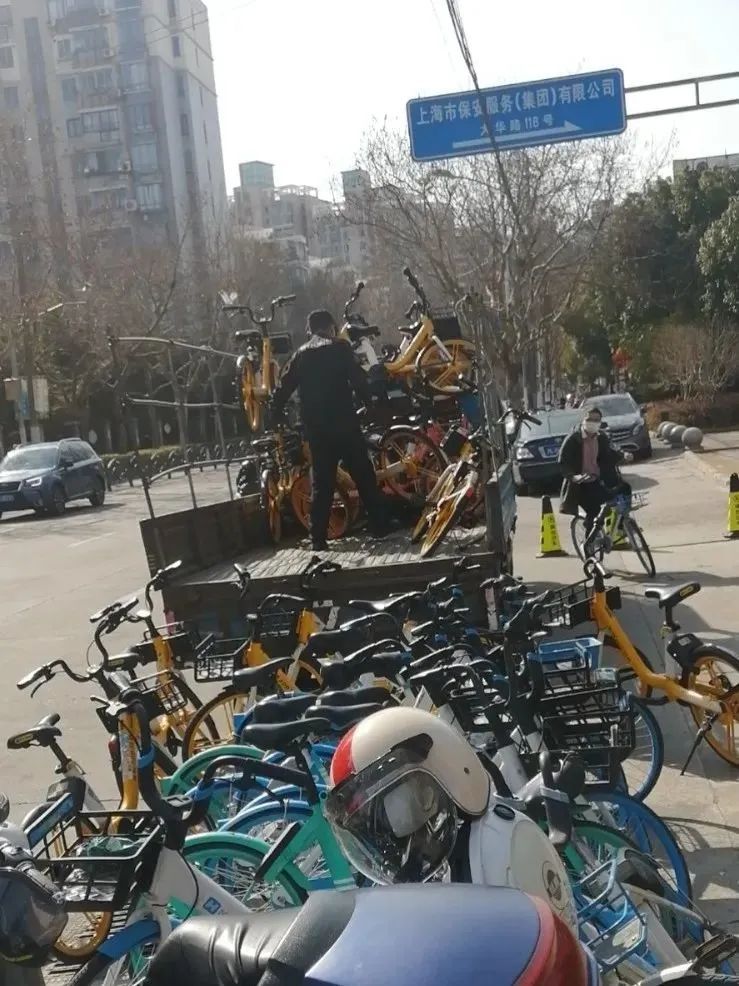 除了长征镇的馨越公寓门口,在万里街道毗邻宝山区的大华虎城旁,在石泉街道岚皋路地铁站外,共享单车在多地集体搁浅,亟待被解救。