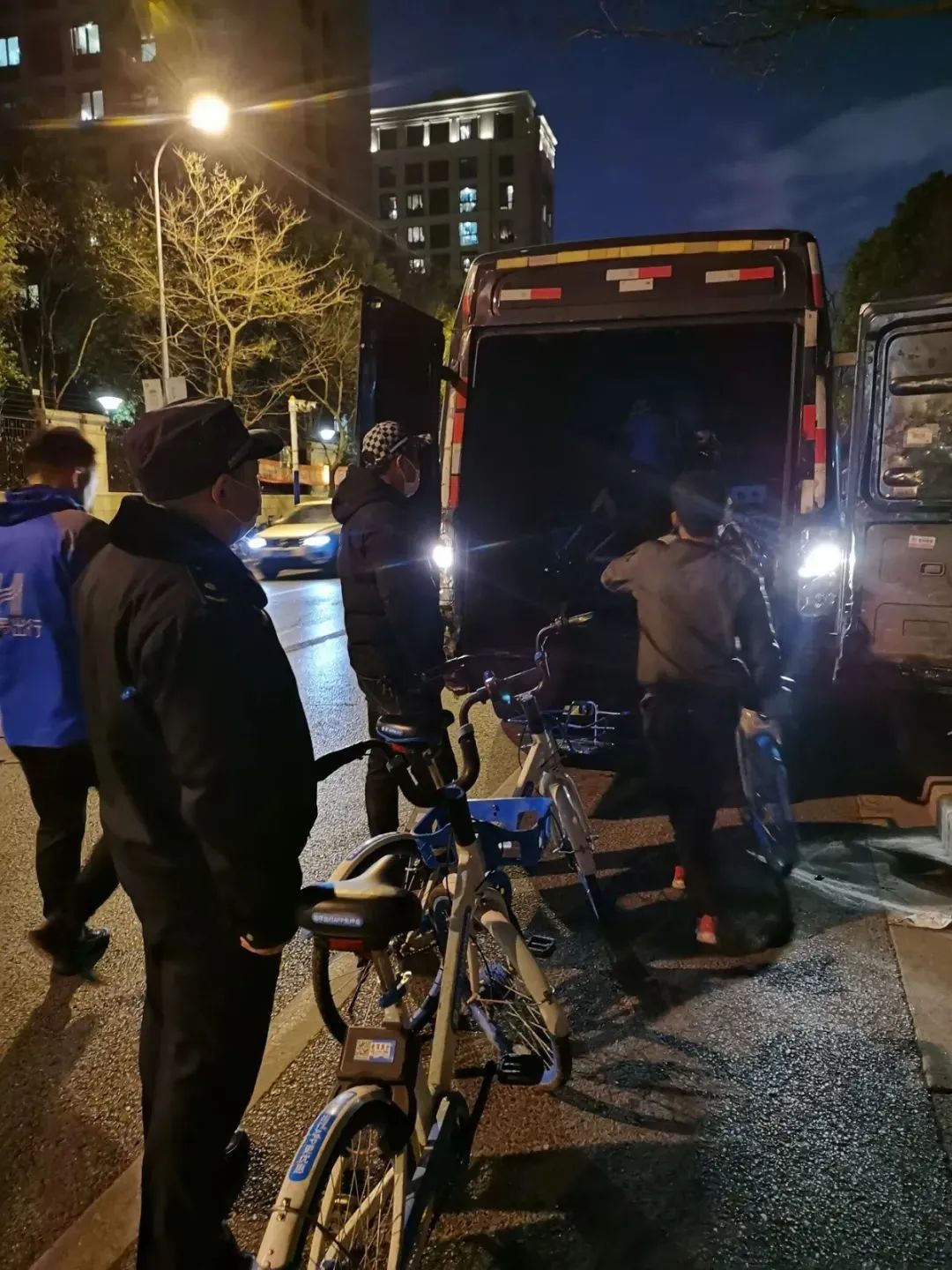 为了清淤的同时保障小区住户次日上班“有车可骑”,城管长征中队牵头组织哈啰、美团、青桔为首的多家共享单车运营企业召开会议,群商群议划定小区门前可供共享单车集中停放的区域范围,并约定在每日18点至20点30分的下班高峰时段,由各运营企业派专人专车“后场”,及时清理回收超标停放的共享单车。同时,城管中队每日安排执法力量携服务队值守现场,对占用盲道、机动车道等违规停车行为进行教育劝阻,协助整改,保障人、车道路畅通。