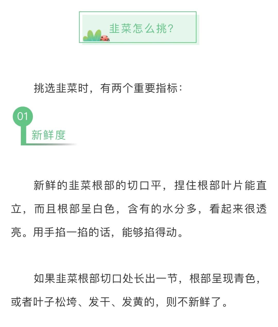 虽说韭菜四季都有,但一年四季中还得数春季的韭菜最为鲜嫩可口。尤其是初春的韭菜最早感受到春季升发的阳气最为肥嫩。