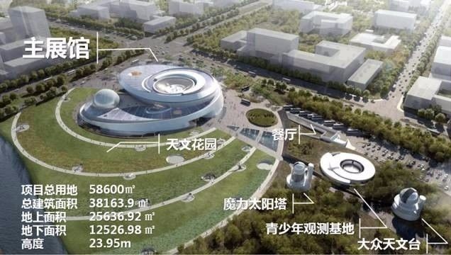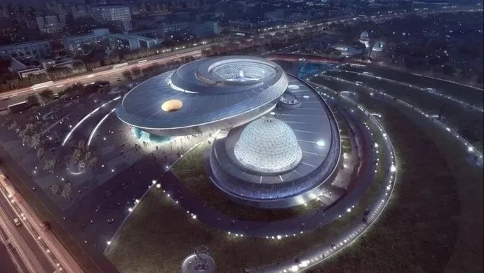 上海天文馆位于临港大道与环湖北三路口,建筑面积38164平方米,包括一幢主体建筑,以及青少年观测基地、大众天文台、魔力太阳塔等附属建筑,将成为全球建筑面积最大的天文馆。