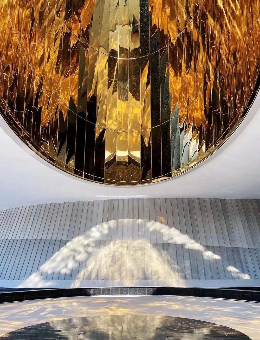 形似巨碗的倒转穹顶,则采用了与常见的“穹顶”相反的构造,以“再造一个新的地平线”为设计理念,当游客置身其中,好像走进了一处与凡世隔绝的山谷,只留下头顶一片纯净的天空“与天对话”。