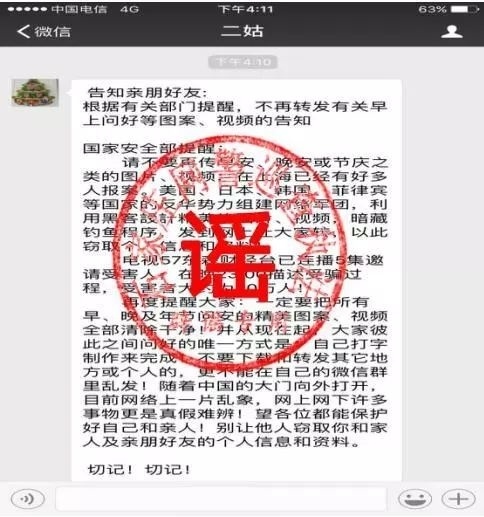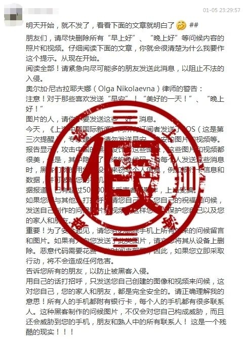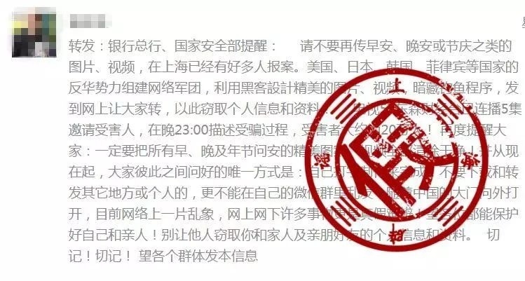 其实,发送“早安”“早上好”“晚安”“晚上好”“美好的一天”等图片或视频会被黑客攻击等谣言已经被辟过无数次。原始版本的谣言早在2015年就已在网上流传,此番又“改头换面”出来骗人。