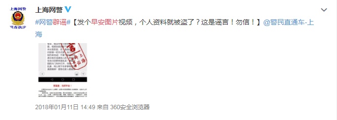 △上海警方在2018年初也对此进行过辟谣