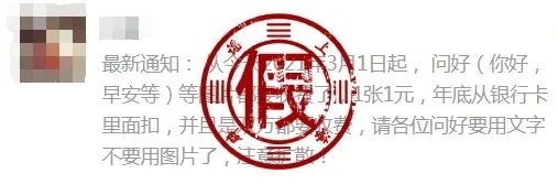 近日,很多用户在微信后台询问一则网络传言的真假:“从2021年3月1日起, 问好(你好,早安等)等图片都要收费了,1张1元,年底从银行卡里面扣,并且是双向收费,请各位问好要用文字,不要用图片和小表情包了!”